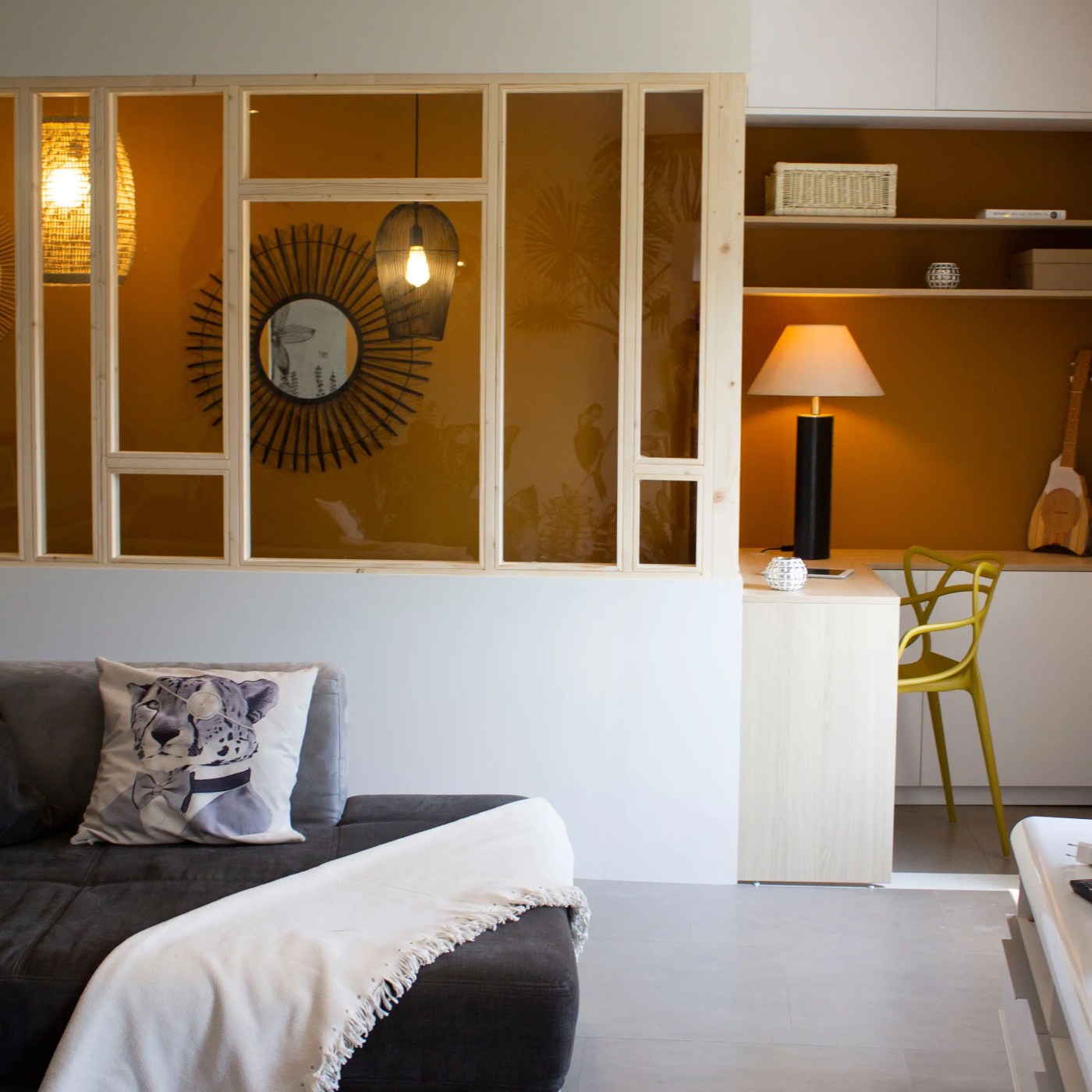 Une charmante rénovation pour cette maison de village, un univers éclectique et actuel, qui met en valeur les objets ramenés des quatre coins du monde. Un salon télé, une cuisine et une chambre parentale aux teintes chaudes, matériaux authentiques et chaleureux. Un magnifique papier peint et une verrière sur mesures en bois dans le salon, accompagné de multiples rangements sur mesure.