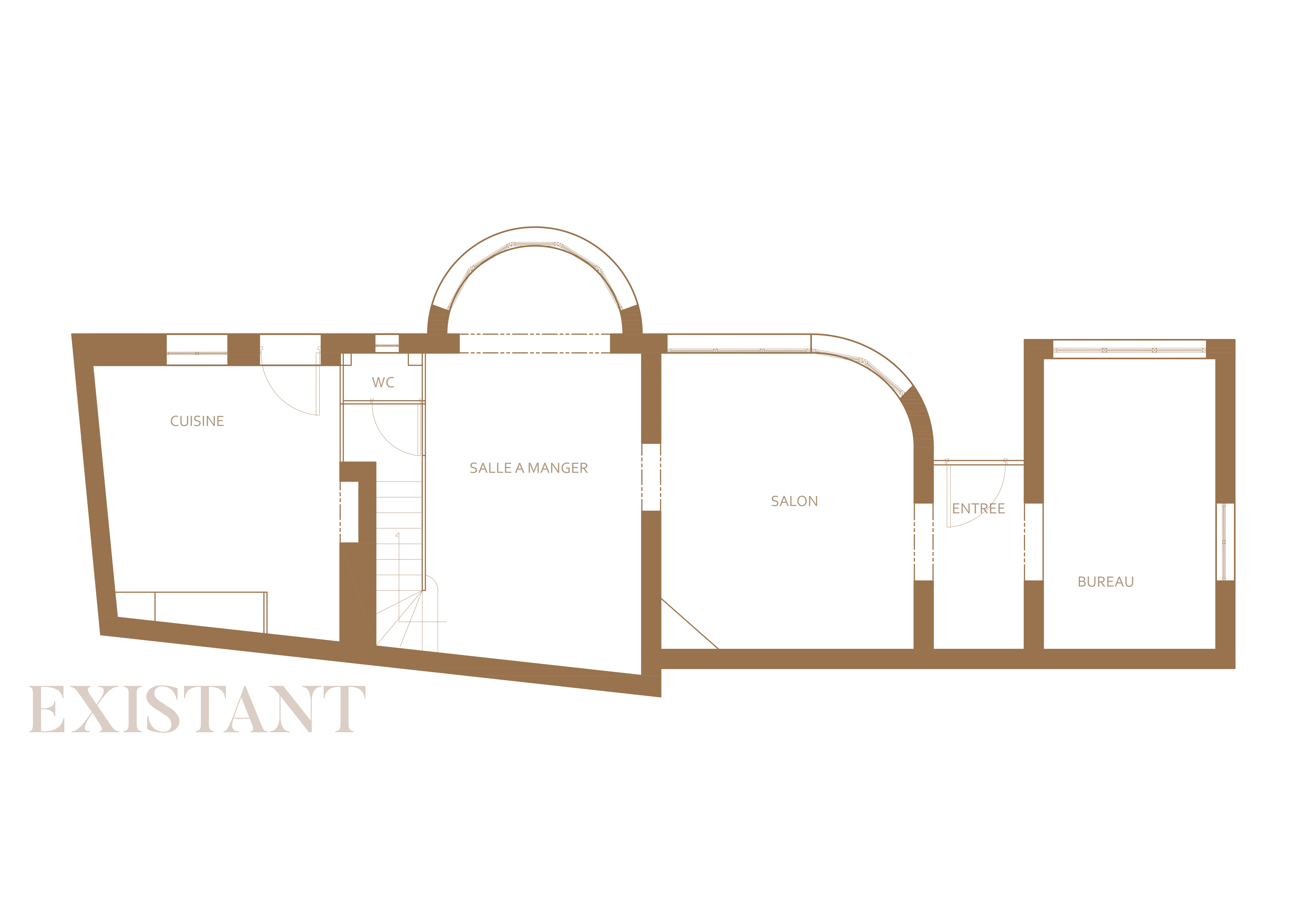 La suite parentale, quant à elle, se distingue par des tons pastel combinés au bois et à des éléments naturels, pour un style organique et apaisant. Les imposantes arches existantes sont mises en valeur par de beaux zelliges. En contraste, un dressing sur mesure aux courbes harmonieuses se prolonge jusqu’à la salle de bain, où des portes en cannage apportent chaleur et authenticité, en accord avec le béton décoratif qui orne les murs et les sols, pour une ambiance chaleureuse et artisanale.